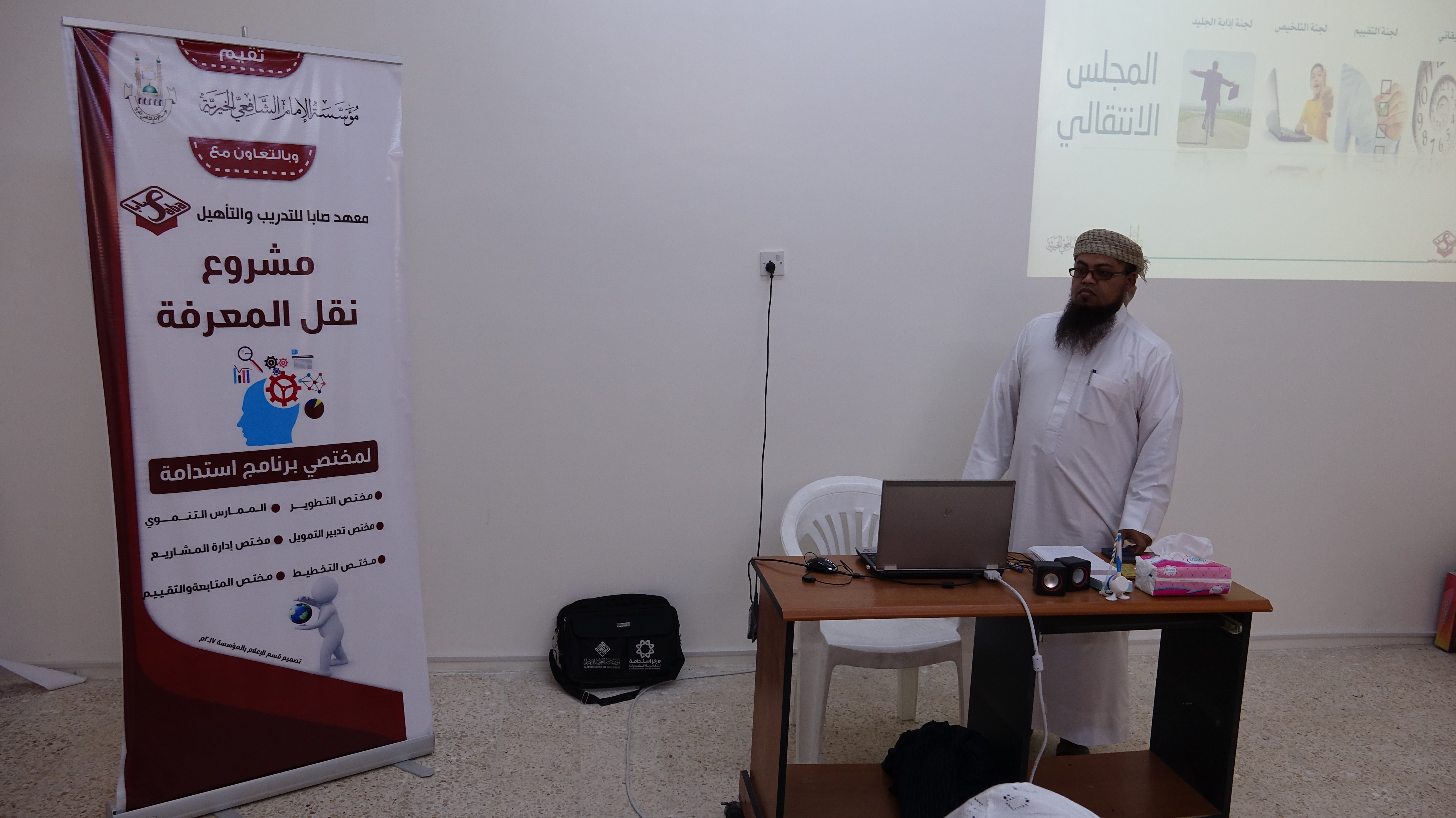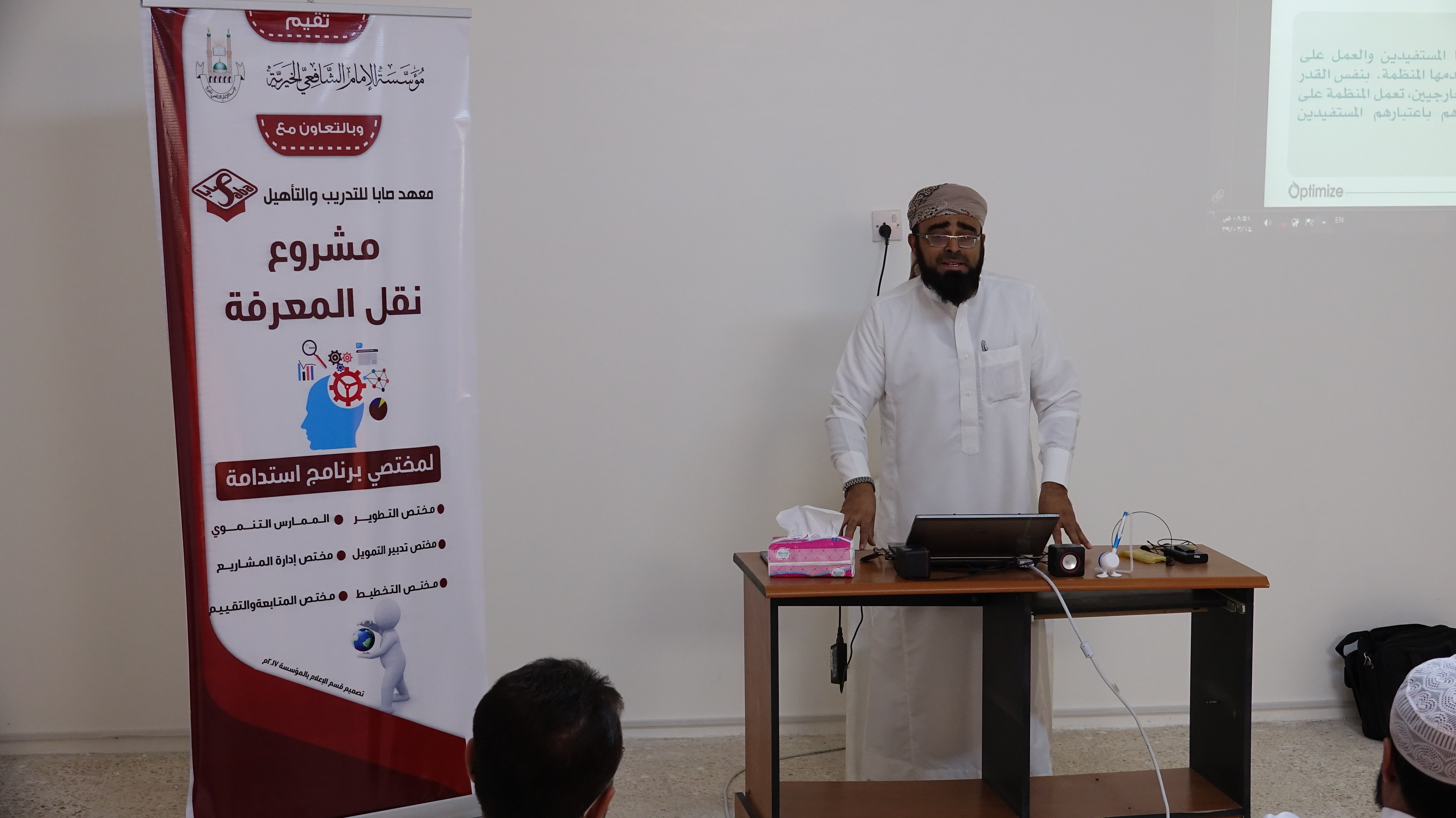 الأثنين 30 ربيع الأول 1439هـ 18-12-2017منفذت مؤسسة الإمام الشافعي الخيرية بالتعاون مع معهد صابا للتدريب والتأهيل مشروع نقل المعرفة لمختصي برنامج استدامة لموظفي ومنتسبي المؤسسة .