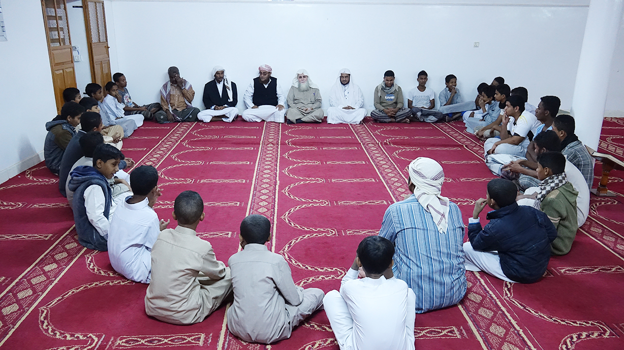 حيث تم متابعة سير الحلقات في المسجد كما تم الاجتماع بطلاب المسجد حيث تحدث الشيخ عبدالله بن عبدالقادر باحميد رئيس المؤسسة عن اهمية الحلقات وحفظها للشباب وعن دور حفظ القران في تربية الشاب تربية صحيحه .