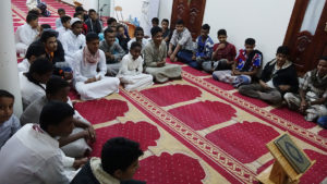 حيث تم متابعة سير نشاط الحلقات في المسجد كما تم الاجتماع بطلاب المسجد حيث تحدث الشيخ عبدالله بن عبدالقادر باحميد رئيس المؤسسة عن أهمية حفظ القران الكريم وآدابه لما له من أهمية في الدنيا والأخرة .