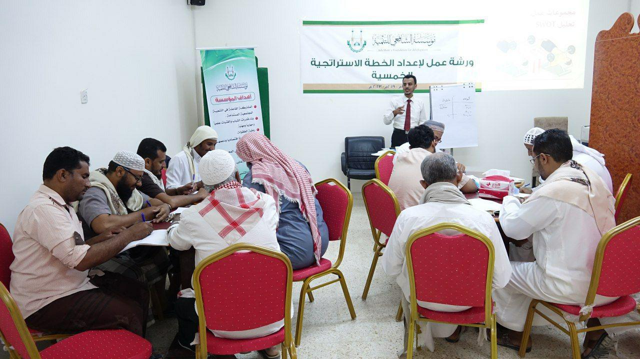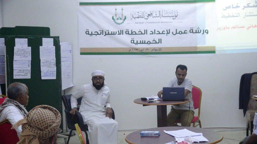 أقامت مؤسسة الشافعي للتنمية ورشة عمل لاستكمال الخطوات العملية لفريق إعداد الخطة في إطار إعداد الاستراتيجية الجديدة الخمسية للعام 2019 م – 2023م .
