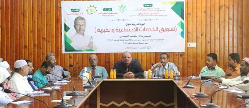الخميس 9 جمادى الآخرة 1440هـ 14-2-2019مبرعاية كريمة من الاستاذ / عصام حبريش الكثيري وكيل محافظة حضرموت لشؤون مديريات الوادي والصحراء والاستاذ / عبدالله باجهام مدير عام مكتب وزارة الشؤون الاجتماعية بوادي حضرموت اقام اتحاد منظمات المجتمع والصحراء وبالتنسيق مع جمعية سواعد للتنمية بمديرية تريم دورة تسويق الخدمات الاجتماعية والخيرية .