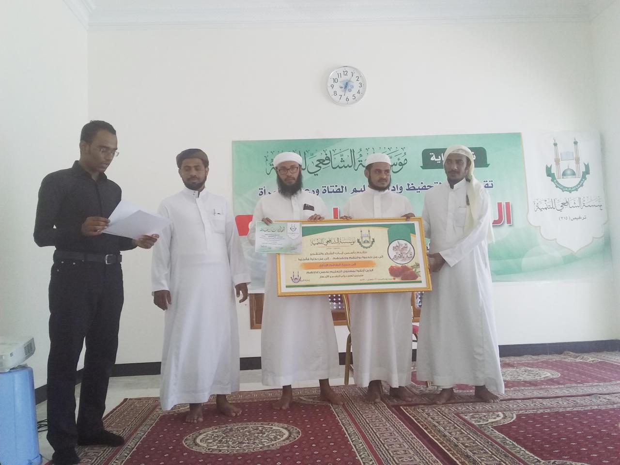 كما تم تكريم المدارس التابعة للمؤسسة وتكريم المعلمين والمعلمات لدورهم في نهوض المجتمع والرقي بالتعليم في مجتمعاتهم بحضور مدير ادارة التعليم بالمؤسسة الاستاذ / عامر باشامخة ومديرة ادارة الفتاة ورعاية المرأة الأستاذة / اماني الحدري .