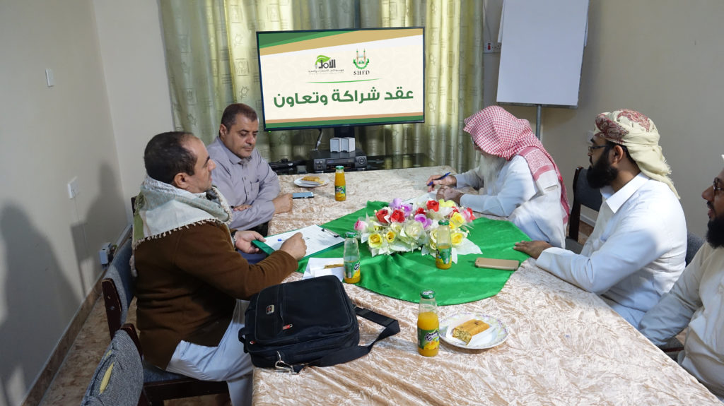 وتضمنت الاتفاقية التعاون بين الجانبين في مجالات التنمية والتدريب والاستشارات حيث مثل المؤسسة في التوقيع الشيخ / عبدالله عبدالقادر باحميد رئيس المؤسسة وعن مؤسسة الأمل للاستشارات والتنمية المدير التنفيذي / أمين علي السلطان وعن جمعية رعاية وتأهيل المكفوفين امين عام الجمعية / عبدالمعين سالم بكير.