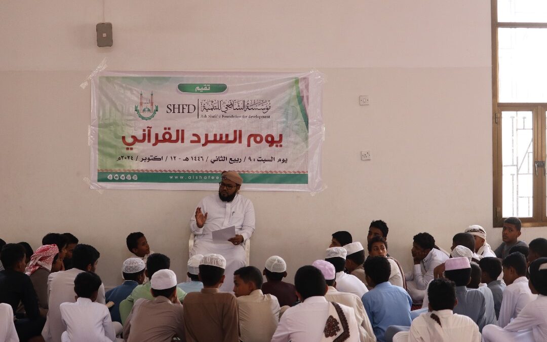 الخميس 21 ربيع الثاني 1446هـ 24-10-2024مفي أجواء قرآنية روحانية… تضج فيها الأصوات بآيات العلي الحكيم…. وفي صبيحة يوم السبت 9 ربيع الثاني 1446هـ الموافق 12 أكتوبر 2024م أقامت إدارة المساجد والتحفيظ بمؤسسة الشافعي للتنمية بسيئون يوم السرد القرآني، بحضور 55 طالبًا من طلاب المركز القرآني النموذجي.