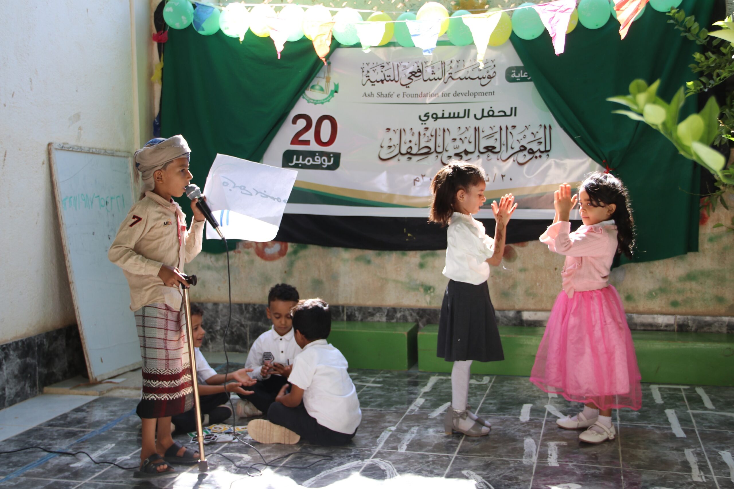 الأربعاء 10 جمادى الآخرة 1446هـ 11-12-2024ماحتفلت برامج رعاية الطفولة باليوم العالمي للطفل صبيحة يوم الأربعاء 20 نوفمبر 2024م وذلك في (68) برنامجًا تشرف عليها مؤسسة الشافعي للتنمية تضم (٣٩٨١) طفلاً وطفلة.