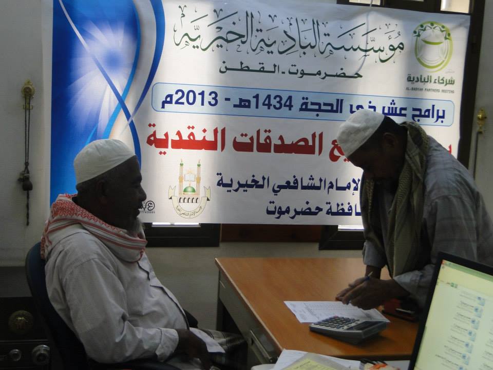 نفيذ مشروع برامج عشر ذي الحجة بدعم من شركاء البادية ضمن برامج عشر ذي الحجة لعام 1434هـ 2013م المؤسسة تنفذ برنامج توزيع لحوم العيد وتوزيع الصدقة النقدية لعام 1434هـ الموافق 2013م وقد استفاد من البرنامجين ( برنامج لحوم العيد 56 أسرة تضم 450 فرد )
