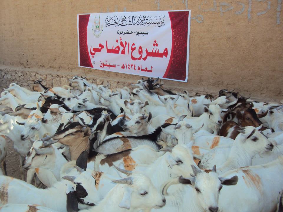 نفذت مشروع الأضاحي لعام 1434هـ الموافق 2013م بحمد الله وتوفيقه نفذت المؤسسة مشروع الأضاحي لهذا العام في كبرى مديريات الوادي ( سيئون , تريم , القطن )